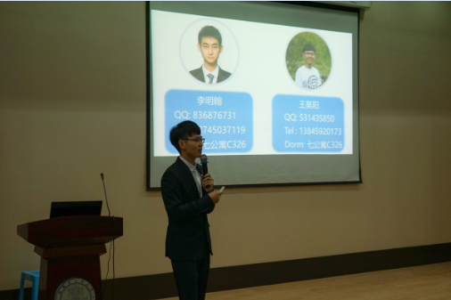 在第二部分,兼职辅导员王昊阳从学风(成绩总结)、本学期年级工作计划、自身发展与团队建设以及TIPS(几点叮嘱)四个方面为同学们做了详细讲解。王昊阳着重强调了学习是第一生产力,并在“选择—状态—用途”三个层面,解读了学习的重要性,令同学们印象深刻!同时,回顾大一成绩,王昊阳表扬了成绩突出的班级,鼓励大家不断向前,打造优良学风班!在本学期年级工作计划方面,王昊阳在党建心理、年级活动、学习成绩、团队建设四个方面对同学们提出了相应的要求“无一掉队、无一不涉、无一补考、无一不适”。