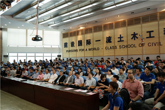教师代表发言环节,钢木学科组主任武岳教授阐述了目前国内土木工程发展遇到的问题,工程系统的复杂性提高要求师生对于多学科交叉的研究,而随着国家多个政策的推出,外部需求的不断提高,国家对于国际型、创新型人才的需求更加紧切,未来土木工程将沿着大系统、多学科、智能化的方向发展。武老师倡议全体新生要提高自己的使命感,享受科研时光,成为更好的自己。