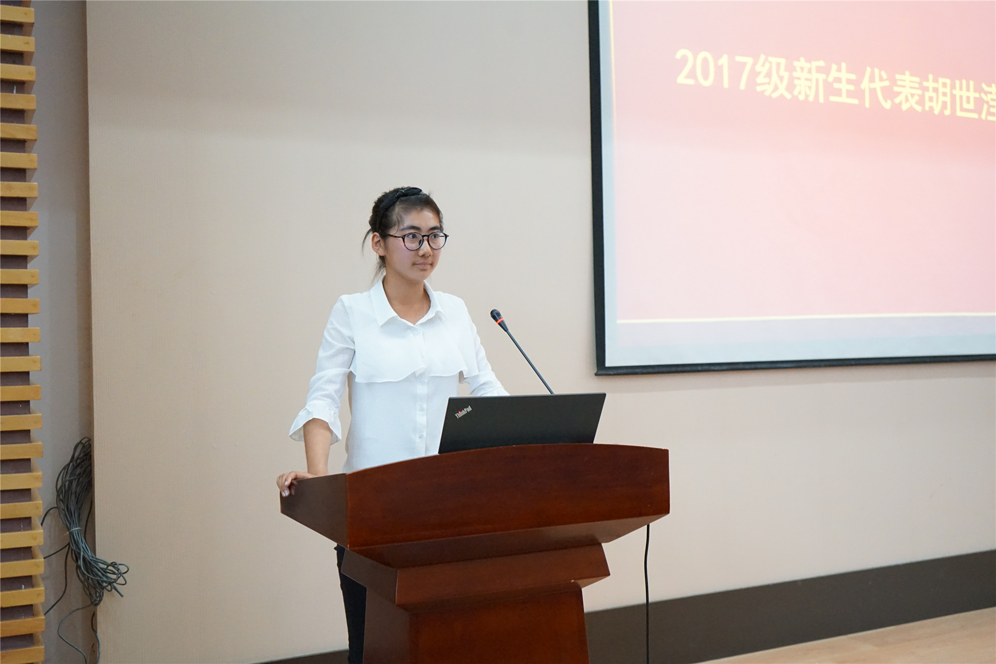 新生代表胡世滢发言