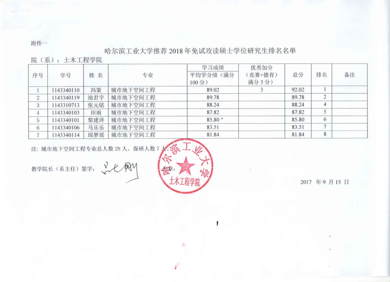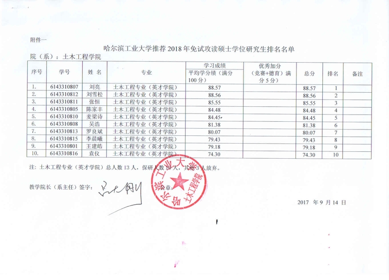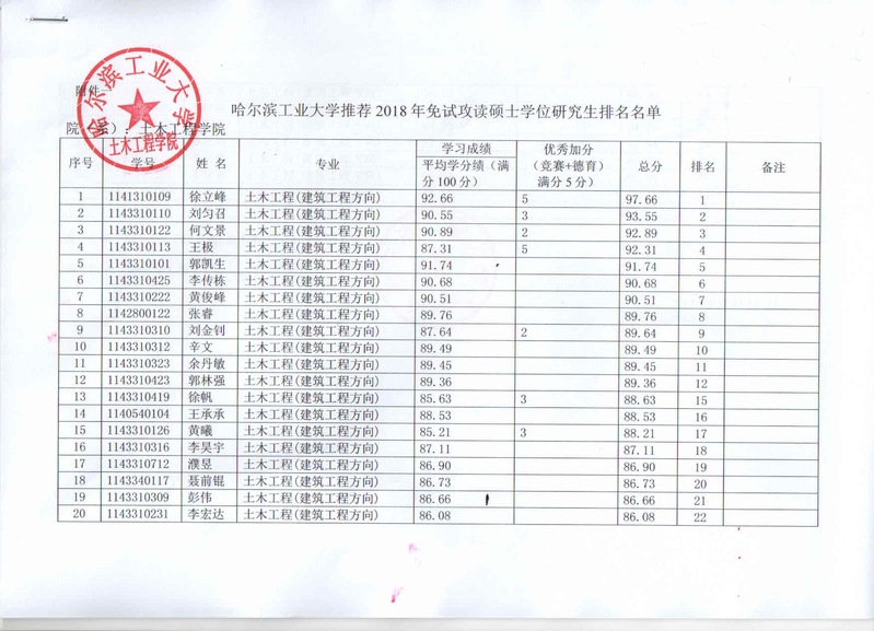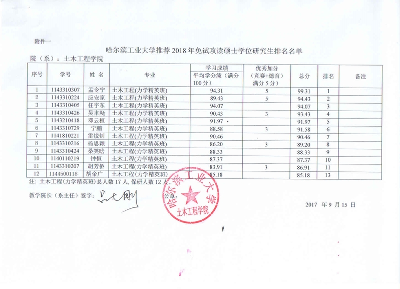 Mksport体育推荐2018年免试攻读硕士学位研究生排名名单