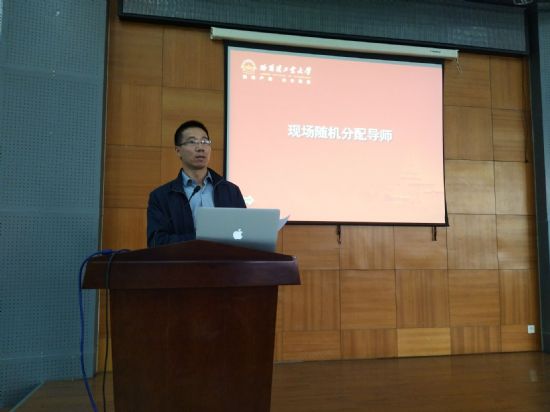会议最后,党委副书记魏小坤老师现场操作随机软件为17级新生分配了导师并宣读结果,到场导师与所带员工进行了第一次见面。