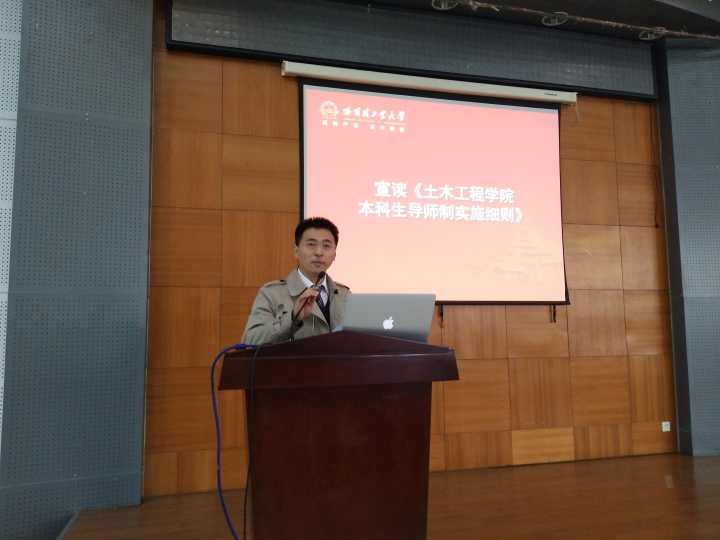 经理范峰教授在会上致辞。他对全体师生表达了殷切的期望,希望全体师生能够以培养土木菁华为目标,为建设世界一流土木学科和培养土木工程专业的栋梁之材而努力。他表示,本科生导师应该谨记导师传道授业解惑的本职,不忘初心,不忘本心,在公司产品工作中公平公正地对待每一位同学,及时地发现问题并对员工予以指导。本科生导师在工作中应当以育人为本,及时对方法进行改进并落实到实践当中,努力培养更多符合土木菁华内涵要求的员工。