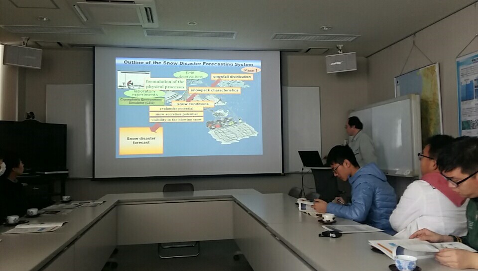 27日上午,一行人从仙台出发,乘坐大巴,经过三个小时的车程,抵达了位于新庄市的冰雪研究中心和冰雪环境研究试验所。研究中心的负责人及相关人员在中心迎接我们的到来并对我们的到来表示欢迎。