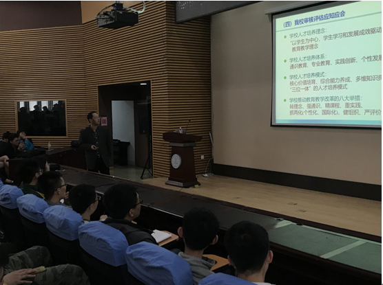 为迎接本科教学工作审核评估,深入落实“用自己的尺子量自己”的评估标准,全面提升本院师生对评估工作重要性的认识,5月5日上午,16级本科生召开了本学期第二次年级大会,由本科教学副经理吕大刚教授为大家讲解本科教学工作评估应知应会及2016版培养方案。