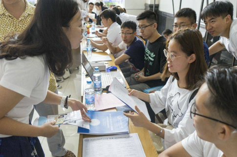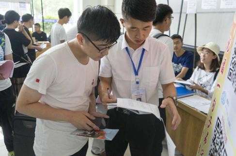 为了更好地开展迎新工作,2018级辅导员樊少勇带着迎新志愿者早早就开始筹备迎新工作事宜,制定工作方案,明确工作任务。8月16日早上6点,全体人员准时到岗。随着2018级新生开始陆续前来报道,迎新工作人员各司其职,满腔热忱,耐心与家长沟通以微笑做好迎新服务。为方便家长和员工建立联络,在新生接待处专门制作了迎新展板,除了有QQ群的二维码,也有对来自祖国各地家长和新生的问候,体现浓浓的公司情谊。