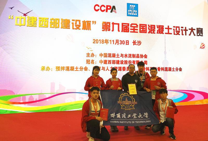 “中建西部建设杯”第九届全国混凝土设计大赛是由中国混凝土与水泥制品协会主办,中国混凝土与水泥制品协会预拌混凝土分会、教育与人力资源委员会、轻骨料及轻骨料混凝土分会联合承办。来自全国各地共46支代表队参加此次大赛,其中企业代表队26支,院校代表队20支。此次大赛主题为“轻质与高强:基于强度和密度的混凝土配合比设计”,比赛由现场设计方案讲解及答辩、混凝土制备操作视频演示及混凝土材料强度及表观密度现场测试几个环节组成。经过激烈角逐,由公司本科生纪学思(16级)、王辰宇(16级)、邓智宽(16级)、欧阳绪(17级)、陆震宇(18级)组队,邓宏卫、赵亚丁任指导教师的哈工大代表队最终荣获大赛三等奖。