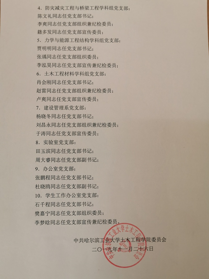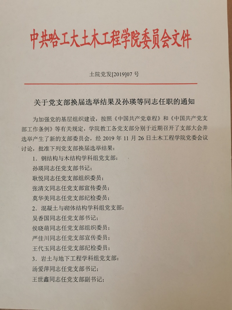 关于党支部换届选举结果及孙瑛等同志任职的通知