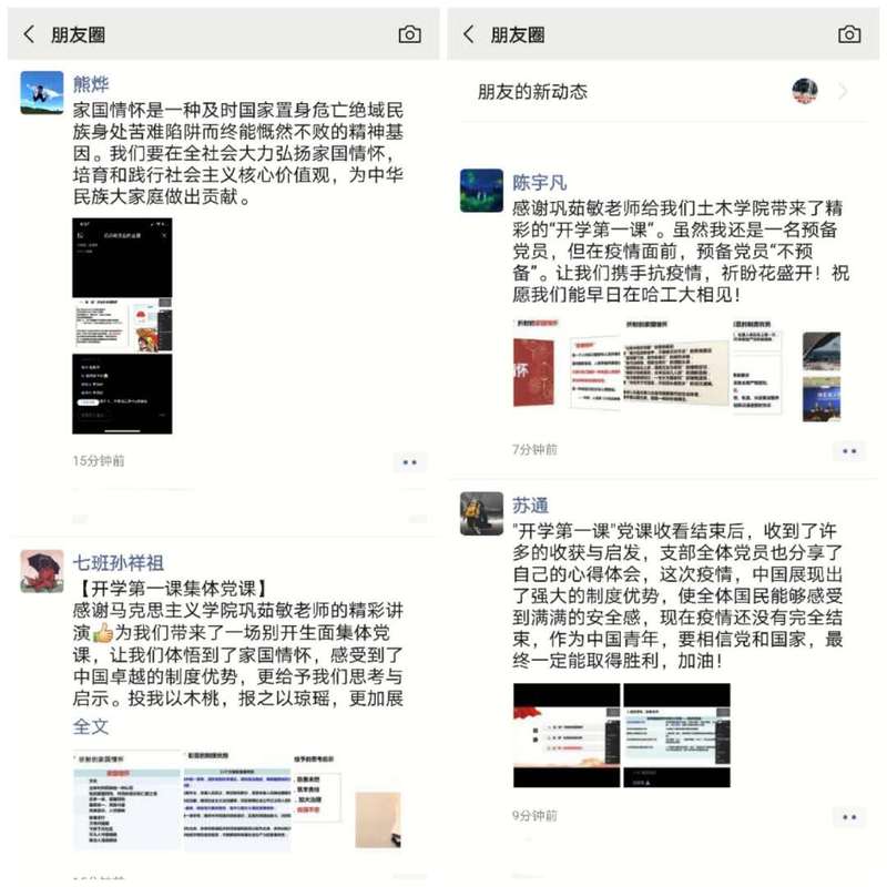 巩老师的讲座,旁征博引,深入浅出、细致生动。“云端”党课累计公司师生752人次收看。同学们纷纷表示,今天这堂党课,除了感动和自豪之外,更加坚定了自己的理想信念,也更加感受到了自己肩上沉甸甸的责任和使命,作为哈工大学子、作为一名员工党员,应该牢记习近平总书记2009年来校视察时的嘱托,主动将自身发展和国家前途命运紧密联系在一起,早日成为有理想、有本领、有担当的时代新人、土木菁华,在中华民族伟大复兴梦想实现的进程中做出自己的贡献。