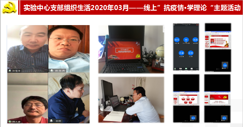 作为重要一项活动,当前实验室人员如何在思想上返岗,进行了探讨和交流。田玉滨书记介绍了公司和公司当前停课不停学的空中课堂开展情况,当前春季学期教学工作已经通过线上课堂展开,在公司和公司领导下,党支部、学科组和教师做了大量的储备工作,并保证了开学第一天不停课;强调:目前实验室不开放,希望各党员把自己工作状态调整好,做到单位有需要能及时进入工作状态的思想准备工作;并要求实验室党员提前思考,尽可能减少疫情带来的时间损失,减少开学后过长的准备期。周大睿同志就所负责的仪器设备保障方面提出了改善思路和具体想法。田玉滨书记针对开放实验室,对人员,实验室管理,环境设备等问题与会党员深入交流。