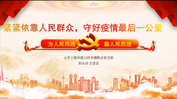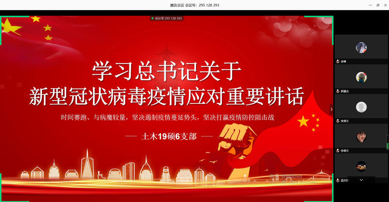 疫情当前,土木党员学子统一思想和行动,在这次特殊的线上主题党日活动中进一步增强了党员意识,提高了思想觉悟和行动自觉,发挥了党支部战斗堡垒作用和党员先锋模范作用,同时也更加坚定了战胜疫情的信心。相信我们众志成城,一定能打赢这场没有硝烟的疫情阻击战。