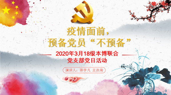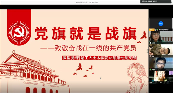 16级本科生支部进行题为“发挥党员先锋模范作用,让党旗飘扬”的微党课,194支部分享“战疫一线党旗红”线上党课,分享了疫情期间共产党员勇于担当、无私奉献的感人事迹,183支部讲述了钟南山院士、张定宇经理等党员战斗在抗击疫情一线的感人故事,支部全体成员自愿签署抗疫承诺书并进行宣誓。18级本博联合支部通过“疫情面前预备党员‘不预备’”的微党课讲述预备党员在疫情防控中挺身而出、勇于担当的先进事迹。