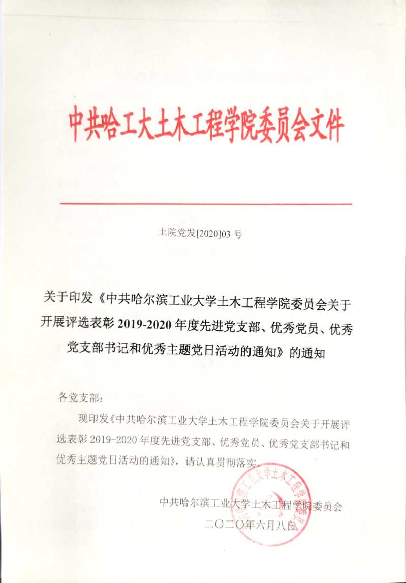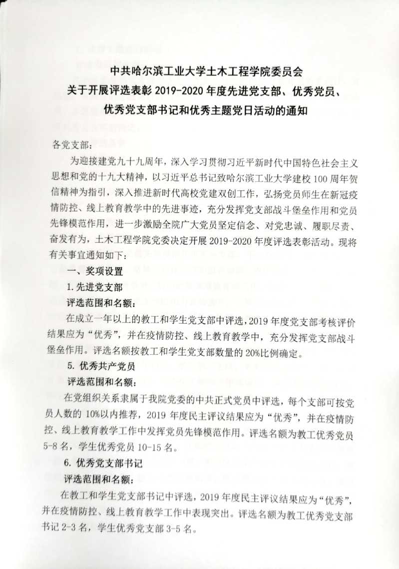2019-2020年度先进党支部、优秀党员、优秀党支部书记和优秀主题党日活动的通知