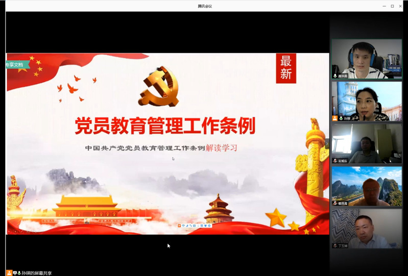 2020年7月23日,钢结构与木结构学科组党支部在线召开主题组织生活会,支部书记孙瑛同志为支部全体党员上了题为《中国共产党党员教育管理工作条例解读学习》的党课,在党课结束后支部成员还针对与中建一局的支部共建活动进行了通报和讨论。