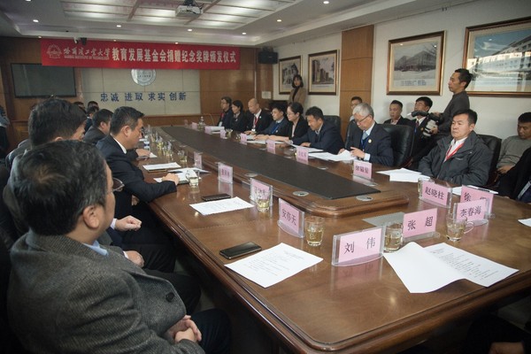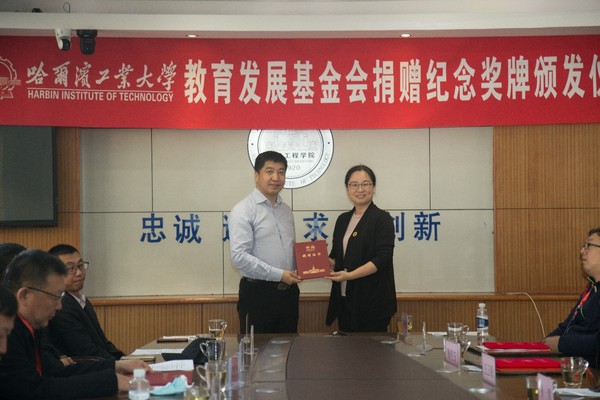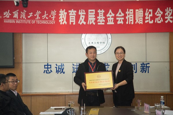 公司党委常委、组织部部长孙雪为捐赠者颁发捐赠纪念奖牌、证书和教育贡献奖奖牌