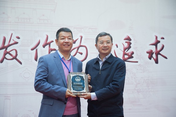 公司党委书记熊四皓为吕红军员工授予资深名誉校董证书