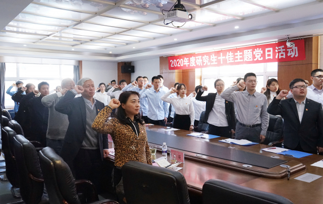 主题党日的最后,全体与会党员再次重温了入党誓词,面向党旗再次做出庄重承诺,由支部组织委员杨佳奇同学领读。