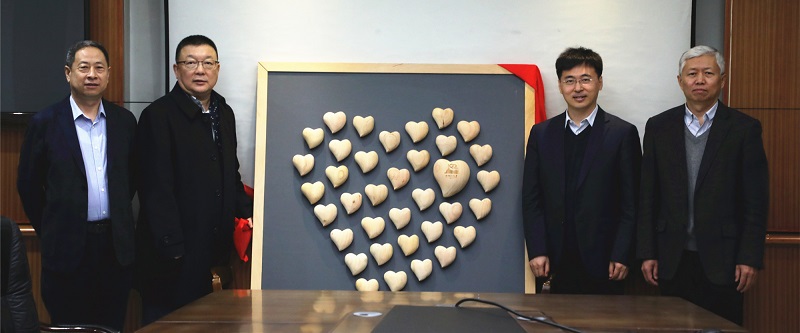 会后初绍军会长与王玉银经理为工民建八二级一班员工捐赠的雕刻品揭幕,该雕刻品由35颗香雪松木制的心形雕刻品组成,代表了班级的35位同学,在印有哈工大百年校庆图样的大爱心四周环绕,象征着全班同学虽已毕业多年,但仍心系母校紧紧围绕在母校周围,饱含对母校深沉的感激与思念之情,同时也表达了员工对母校百载华诞的美好祝愿。
