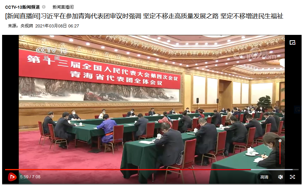 观看习近平总书记参加十三届全国人大四次会议青海代表团审议的新闻视频