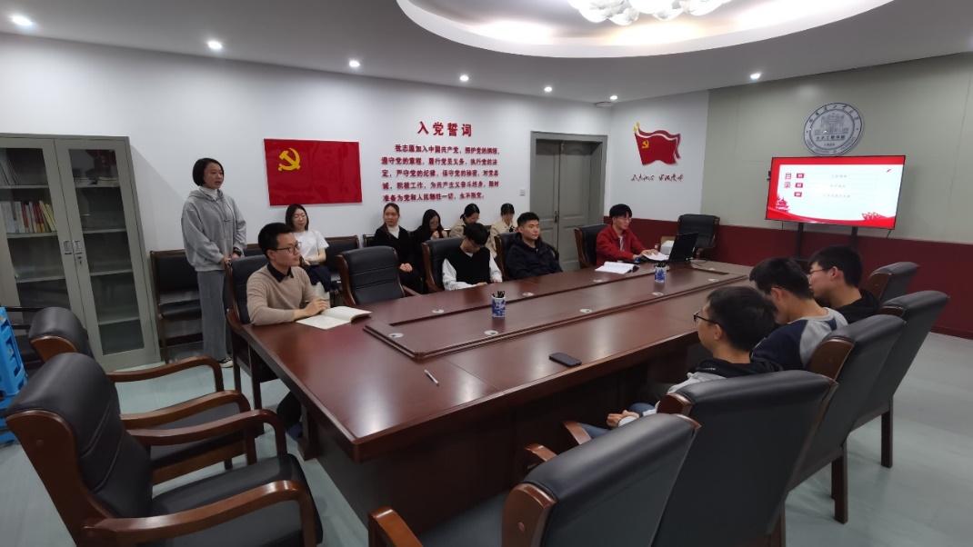 支部书记袁修文讲述了主题微党课带领同学们重温党史。袁修文讲述了中国共产党人精神谱系中红船精神与延安精神的由来和内涵。红船精神是中国共产党的源头精神,贯穿党的百年奋斗史,党正是有了红船精神而不断从弱到强兴旺发达,国家也是有了红船精神而气象万新蒸蒸日上,延安精神是以中国共产党为核心的中华民族优秀分子在为争取民族独立和人民解放事业的不懈奋斗中,在陕北延安极其艰苦的环境下,所体现出来的理想信念、精神风貌、思想品德、工作与生活作风的精华和结晶。袁修文表示,一切向前走,都不能忘记走过的路,不能忘记为什么出发,我们应该不断学习传承党的精神传统,永葆共产党人的入党初心。袁修文还带领大家学习了党旗的诞生历程和象征含义。