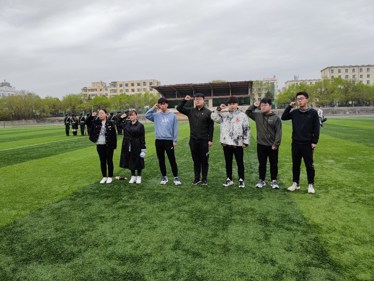 早上七点整,同学们庄严肃立,升旗仪式开始。校国旗护卫队戎装整齐,踏着铿锵有力的步伐护送国旗走向升旗台。伴随着全体党员肃穆的注目礼,鲜艳的五星红旗在绿茵场上冉冉升起,每一位同学心中充满了爱国情、报国志。