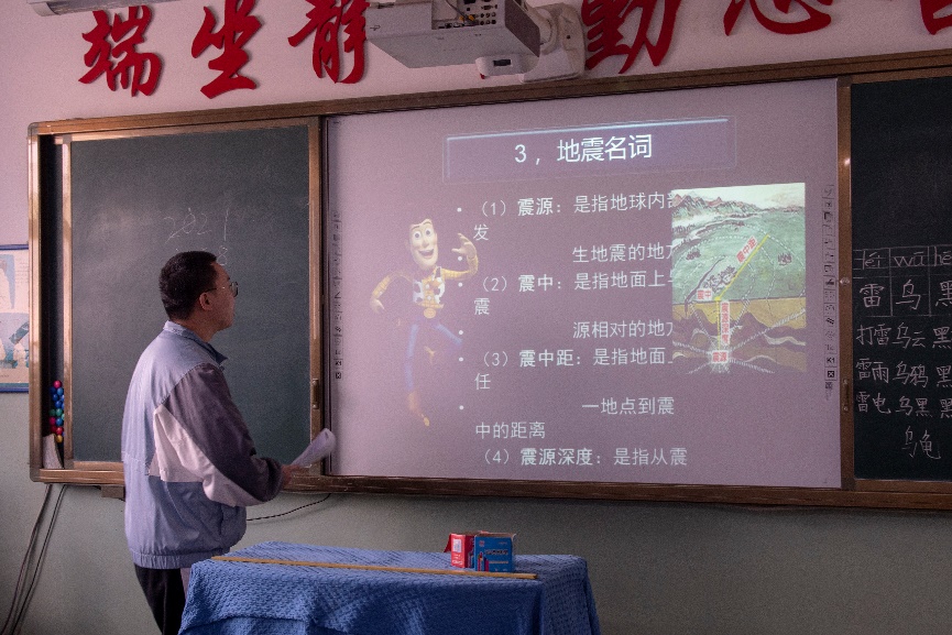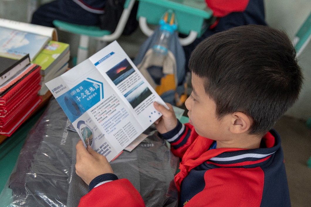 参加活动的党员志愿者们来到小学后,与院青协的成员一起被分成了五组,对小学五个年级分别进行地震知识普及安全教育。每组两名同学,轮流主讲,分工明确。宣讲开始前,员工党员志愿者为同学们发放了自己制作的《地震安全知识宣传手册》,并讲述了13年前四川汶川发生的大地震,让同学们更好地理解“5•12全国防灾减灾日”的含义。随后为同学们播放了地震常识的短片,并结合课件从地震概念、地震起因、地震种类及震前预兆等方面介绍有关地震常识,还通过提问互动的方式加深理解记忆,同学们都踊跃地回答问题。最后主讲人着重讲解了地震发生时进行有效自救、互救的原则、措施和技巧,从心理疏导、医疗防疫、次生危害等方面介绍震后处置及注意事项,并带领员工们进行模拟演练。