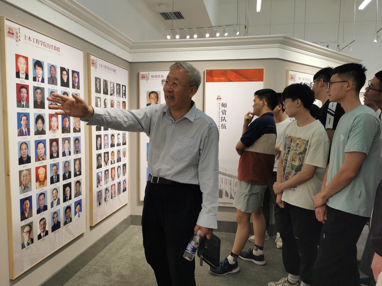 支部全体同学跟随王老师来到土木科研楼院史馆,王老师结合展板为同学们介绍了土木学科百年历程中的重大事件和取得的各项成就。王老师讲述了一张张照片背后的故事,同学们不由对前辈们心生敬畏和钦佩。通过参观讲解支部同学更全面了解了一代代土木人的奋斗故事,更深刻感悟到作为新时代土木人和党员学子的责任使命。在提问交流环节中,同学们积极与王老师交流。最后王老师分享了百年发展史编写过程中紧张又激动的心情,并表示土木学科作为与母校同龄的两个学科之一,厚重的历史中凝聚的是一代代人的锐意进取、艰辛付出的精神力量,希望同学们不断传承,为祖国更加富强、公司公司发展建设贡献力量。随后陶晓铭代表同学们为王要武老师送上鲜花以表示敬意和感谢。