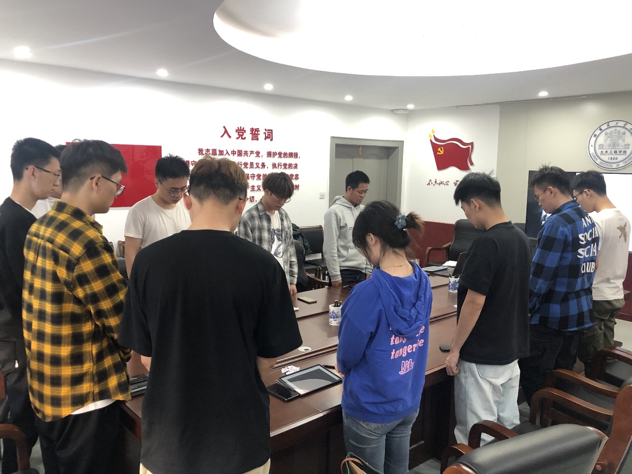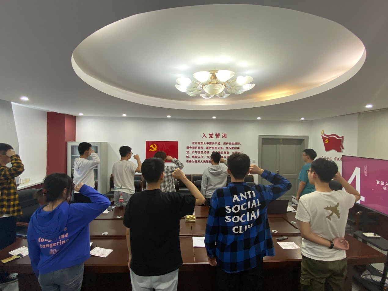 活动最后,全体党员面对党旗一起重温入党誓词,支部孙祥祖领誓,大家在铿锵有力的誓词中坚定了青年学子赤诚报国的信心与决心。