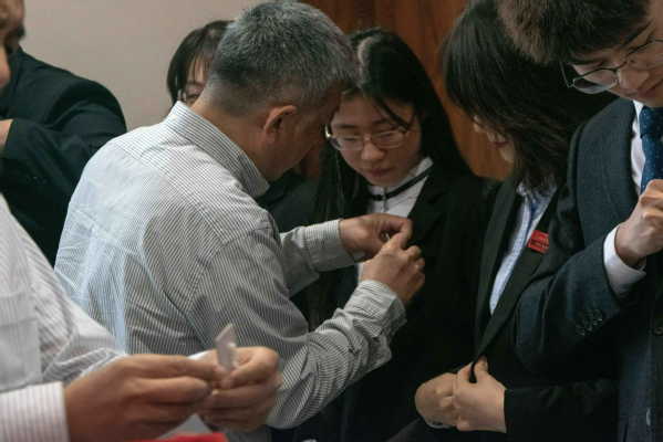仪式开始,公司团委负责人管学民宣读公司团委关于院史馆员工讲解队的成立决定。公司党委副书记吴严为讲解队授旗,现场嘉宾为讲解队第一届成员佩戴胸牌。