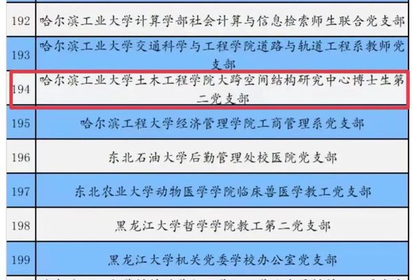 大跨空间结构研究中心博士生第二党支部坚持习近平总书记贺信精神引领,传承沈世钊院士等哈工大“八百壮士”精神,国之重器“天眼”FAST项目带动,依托研究中心建设党支部,以“大师+”“科研+”“项目+”为特色,与第一批全国党建“双创”样板支部钢木学科组教师党支部贯通联合,以“五强五促”引领支部党建与学习科研深度融合。