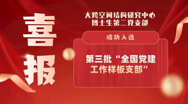 大跨空间结构研究中心博士生第二党支部成立于2017年10月。支部成员均为大跨空间结构研究中心博士研究生,形成博士年级纵向党支部。支部年终考核结果全部优秀,成立以来获校先进基层党组织、校五四优秀集体表彰、校十佳研究生主题党日等荣誉。