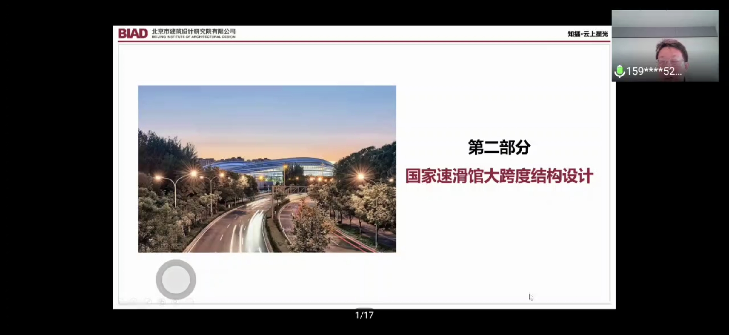在第二部分,朱忠义讲解了国家速滑馆大跨结构设计过程。朱忠义介绍了一些有名的大型体育场馆屋顶采取的预应力索结构及马鞍形单层索网结构的代表性工程,讲述了速滑馆工程概况、结构体系、关键技术问题、计算与分析及建造历程。朱忠义介绍了速滑馆地理位置、设计理念、建筑尺寸,并引出结构布局和由屋顶索网、环桁架、外侧幕墙斜拉索及下部混凝土结构构成的主受力体系,讲解了受力分析和设计过程,又讲解了国家速滑馆的建造历程。