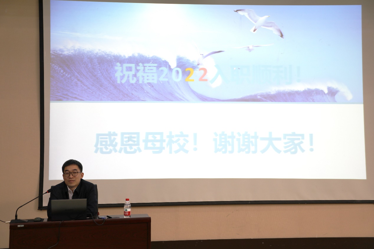 郝庆多员工还对即将毕业的同学们寄予三点希望,一是希望同学们都能够仰望星空、志存高远,选好职业方向;二是希望同学们脚踏实地、久久为功,践行职业发展;三是坚持“规格严格、功夫到家”的校训传统,实现个人成长。