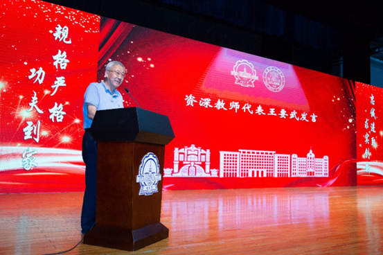 教师代表王要武、李良宝分别发言,希望毕业生同学们和员工们踏实肯干,摆正心态,投身广阔天地,书写锦绣华章,磨砺坚强意志,树立远大理想,建功立业报国,不辱使命担当,秉承工大校训,弘扬土木之光!