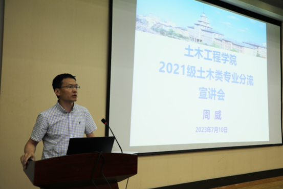 周威解读了土木类内员工选择专业实施细则和力学精英班遴选方案,并介绍了2021级员工学籍情况、各专业方向分流人数、分流时间安排和报名方式。他指出公司将坚持公开、公平、公正的原则,严格按照公司规定和土木类内员工选择专业实施细则执行。