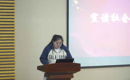 由晶宣读社会实践表彰决定并进行颁奖,她对优秀社会实践团队予以肯定和鼓励,同时激励大家将以上团队成员为榜样,让青年的热情在奉献中闪光,在新时代的实践中长志气、强骨气、厚底气,争做新时代奋发有为的青年人。