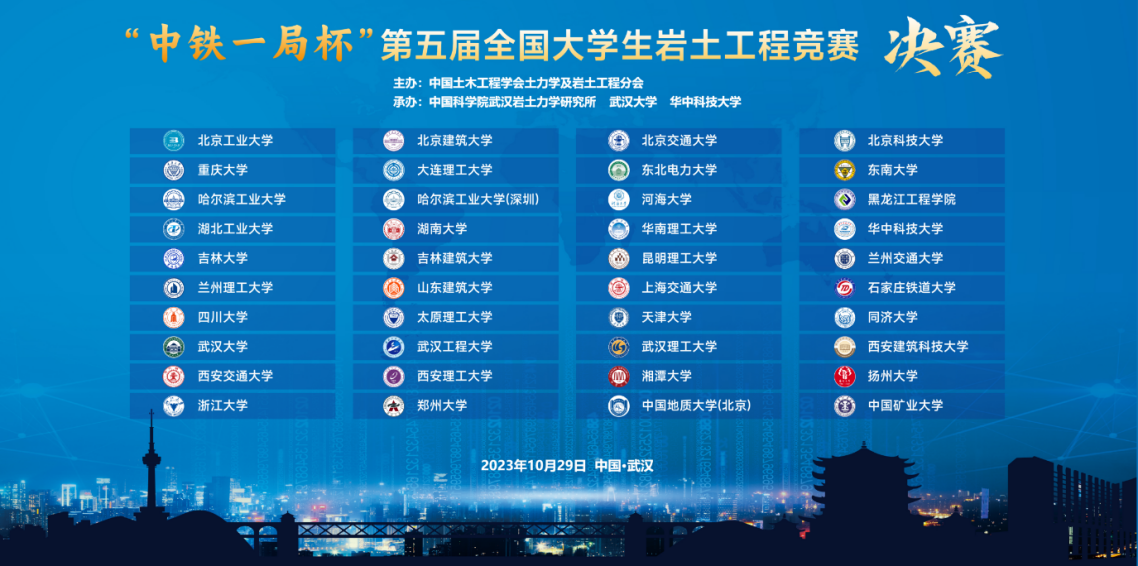 2023年10月28日至29日,由中国土木工程学会土力学及岩土工程分会主办,中国科公司武汉岩土力学研究所、武汉大学、华中科技大学承办的“中铁一局杯”第五届全国老员工岩土工程竞赛决赛在武汉光谷科技会展中心举行。