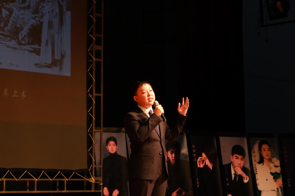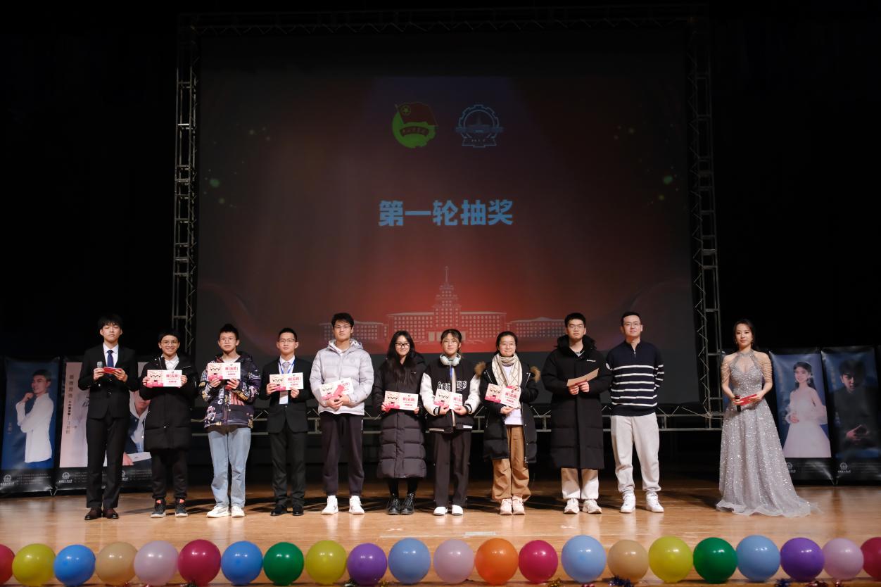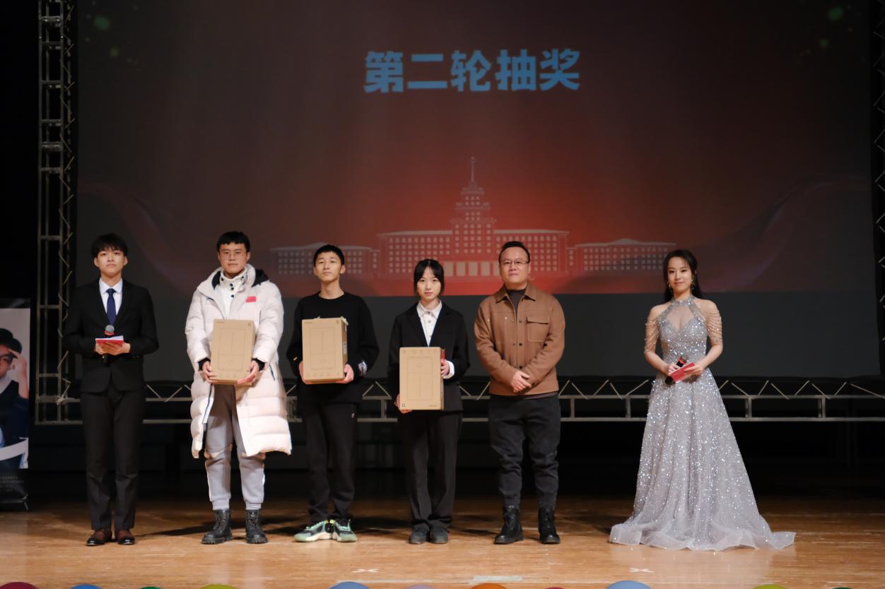 黑龙江广播电视台主持人杨彦军和校团委副书记李梦晗为十大演讲家冠军颁发奖杯和荣誉证书