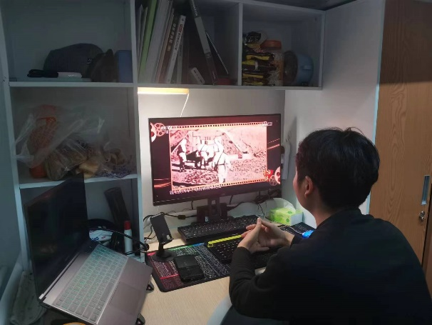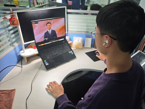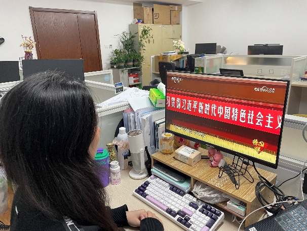 部分党支部组织员工党员通过电脑、手机APP等多种方式,在办公室、学习室、寝室自行观看,并在群里实时上传观看情况。