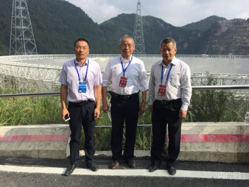 沈世钊(中)和团队成员在落成的“中国天眼”前