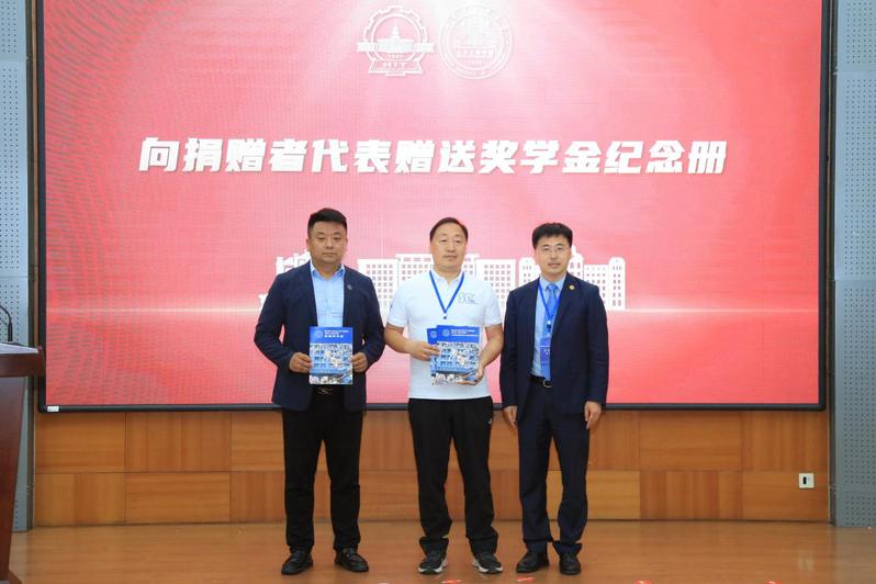 王玉银向教育基金捐赠者代表颁发纪念册