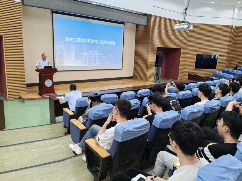 随后,马恩成研究员讲解了目前自主BIM技术的关键核心技术攻关进展,并指出十四五期间将持续开展科研攻关,解决非线性几何建模引擎在复杂造型建筑、重大基础设施工程的适应性等问题,实现自主BIM技术“从有到优”,并为师生们讲述了BIMBase建模软件的应用。