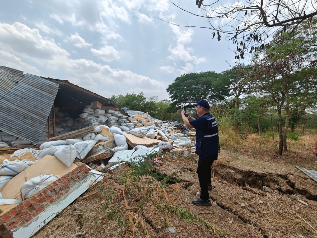 在我国驻缅甸大使馆和缅甸政府的全力支持下,评估组克服余震频发、高温潮湿、交通受阻等困难,昼夜奋战,开展了文物震害调查、工业商业损失评估及间接经济损失评估等工作。籍多发副教授凭借其在抗震防灾领域的专业知识和实践经验,积极参与评估工作,深入调查了缅甸历史文物建筑、当地住宅、厂房等各类建筑物受损情况,通过系统的实地调查和科学分析,确定了受损严重震区的地震烈度分布和影响范围,提出了受损房屋应急加固、安全评估和修复建议,为缅方灾后重建和防灾减灾提供了重要科学依据。籍多发副教授还与缅甸技术部门开展了多场技术交流,分享中国地震灾害评估经验以及公司在城市抗震韧性方面的研究成果。