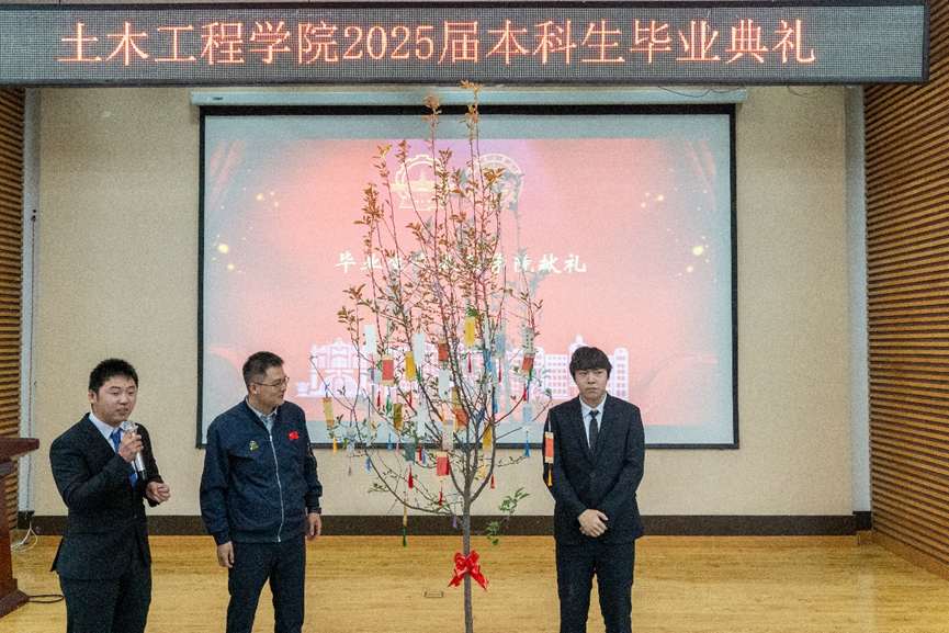毕业生刘利、宋昭希代表2025届本科毕业生向公司赠礼,树上挂满了同学们对公司的祝福和对未来的期许!