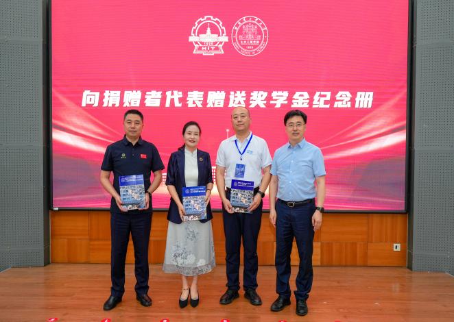 王玉银向教育基金捐赠者代表颁发纪念册