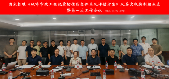 为响应国家关于建设韧性城市的重大战略部署,落实《中共中央、国务院关于推动城市高质量发展的意见》要求,提升我国城市防灾减灾能力,国家标准《城市市政工程抗震韧性指标体系及评估方法》(以下简称《标准》)及英文版编制组成立暨第一次工作会议于2025年8月27日在北京召开。中国工程院院士岳清瑞教授、住房和城乡建设部标准定额研究所姚涛处长、道路与桥梁标准化技术委员会刘亚珊副秘书长以及参编单位有关专家参加会议。