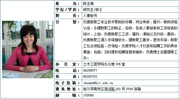 办公室主任助理、人事秘书、校人才服务专员、办公室党支部委员、校教职工合唱团秘书